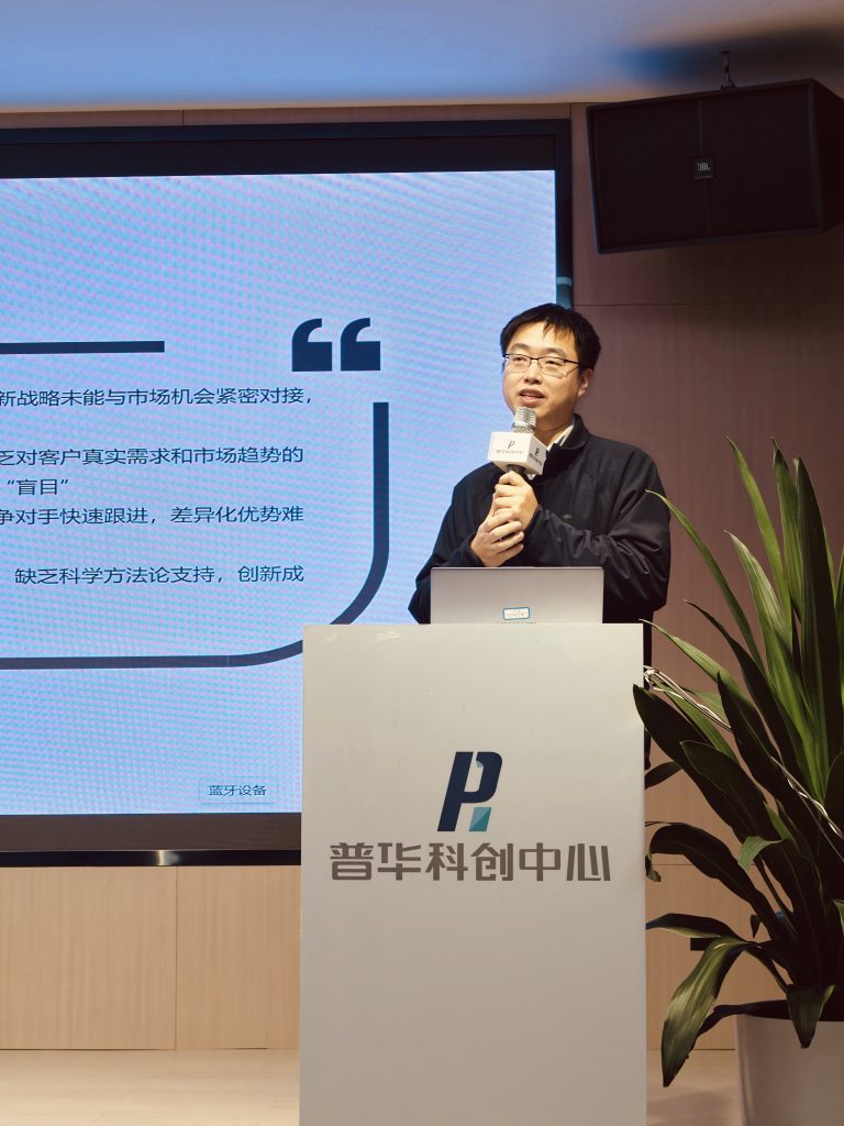 在产业生态伙伴项目分享环节,森舞韬略(SEEKWAVES)首席创新咨询顾问姜昊玮介绍了森舞韬略面向科创企业与创新团队推出的创新业务辅导与孵化项目。该项目聚焦“从技术到市场、从创意到业务”的关键跃迁,通过系统化的商业模式设计、客户价值洞察与组织能力建设,帮助创新成果更高效地实现商业化落地。